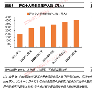1)“个人养老金开户数/基本养老保险参与人数”以2022年末8%、2023年中16%为基础谨慎估计,假设2023年该指标18%,此后每年提升1pct,直至2030年25%。