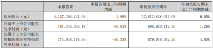 10月30日,益丰发布2023年第三季度报告。根据财报,益丰2023年7-9月营业收入共51.81亿元,比上年同期增长了12.70%;归属于上市公司股东的净利润2.94亿元,比上年同期增长18.96%。