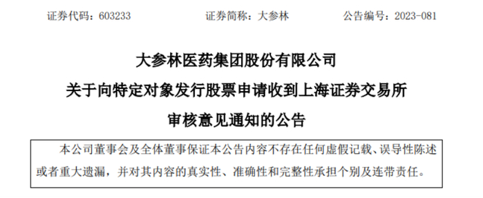 今年1月19日,大参林发布《2023年度非公开发行A股股票预案》公告(下称“《预案》公告”),拟募资30.25亿元,用于门店建设、门店升级、产业基地建设和补充流动资金。