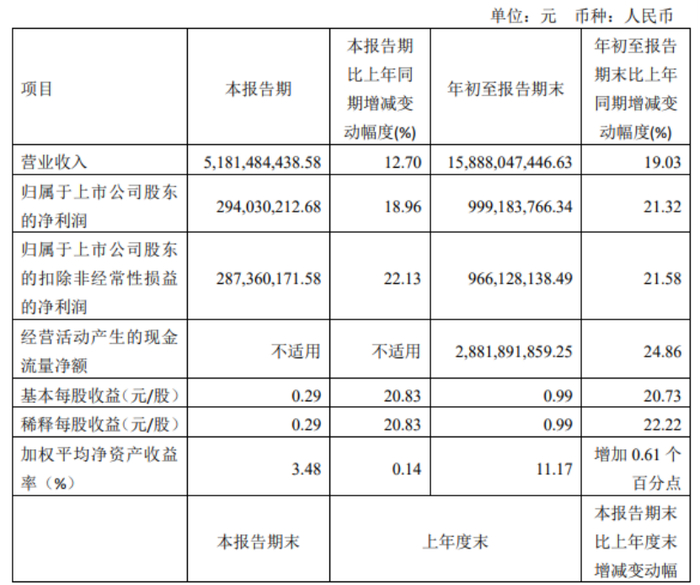2023年初至报告期末,益丰合计营业收入158.88亿元,比上年同期增长了19.03%;归属于上市公司股东的净利润9.99亿元,比上年同期增长了21.32%。