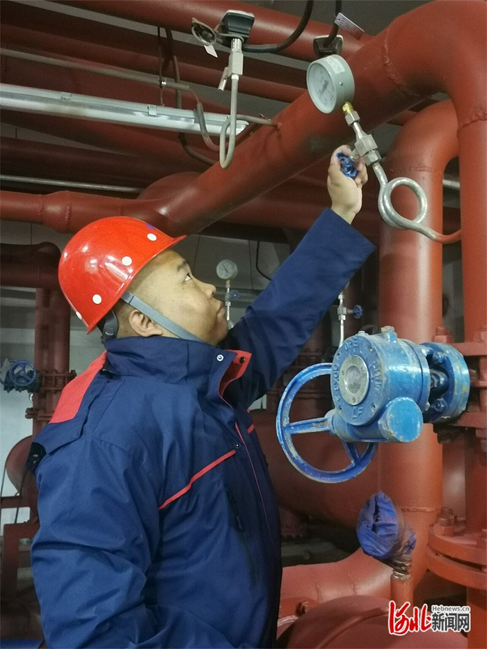 11月14日,涿州市清凉寺街道天伦湾嘉园小区换热站工作人员正在检查设备运行情况。
