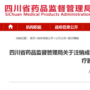 四川省药品监督管理局关于注销成都稳健利康医疗用品有限公司《中华人民共和国医疗器械注册证》的公告