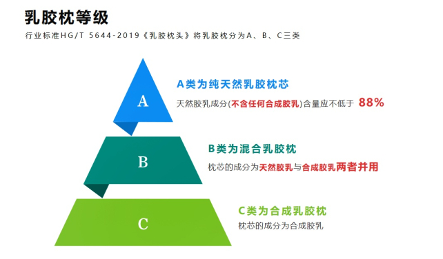 A类为纯天然乳胶枕芯,指不含任何合成胶乳,天然胶乳含量不低于88%;