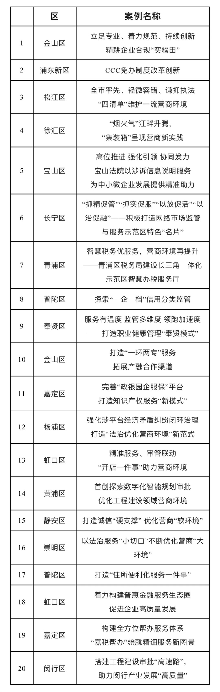 【提示】上海市2023年度各区优化营商环境优秀案例公布