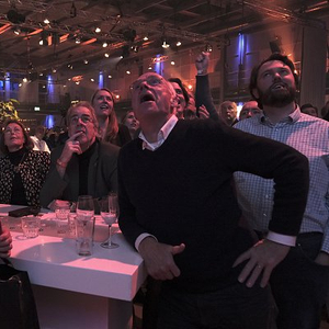 当地时间2023年11月22日,荷兰自由党的支持者在大选第一次出口民调公布后庆祝。图片来源:视觉中国