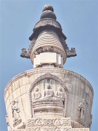 这座金刚宝座塔是北京现存四大金刚宝座式塔之一(其他三座分别为香山的碧云寺塔、五塔寺的真觉寺塔、玉泉山妙高塔)。不过,看过这些各种风格的白塔之后,再来看西黄寺的白塔,真有意外的惊喜,可以用“步步惊喜、美不胜收”来概括。