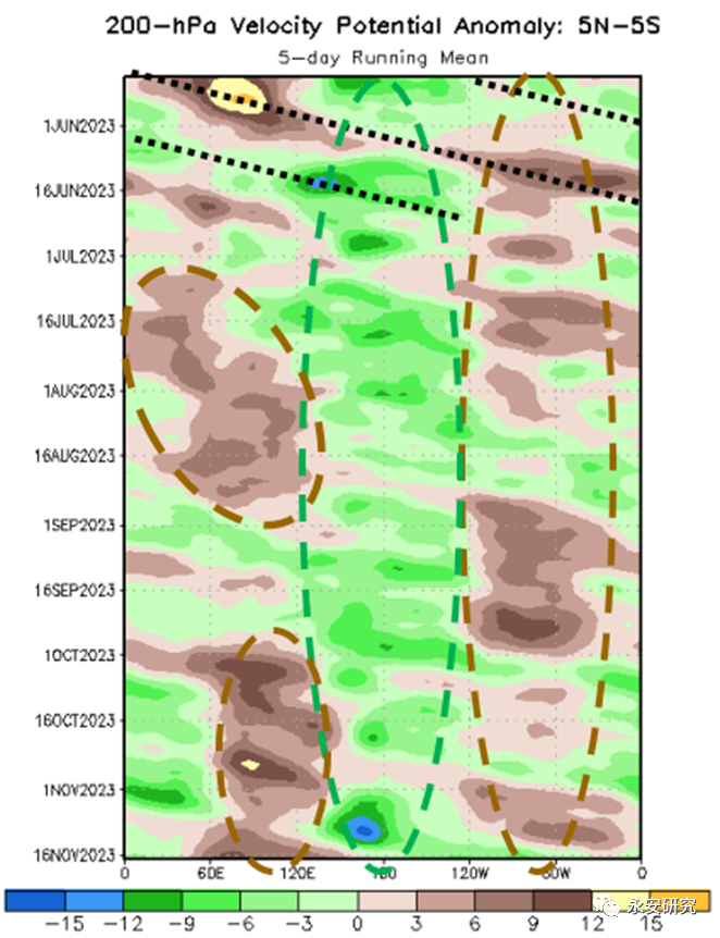 备注:棕色阴影代表不利于降水,绿色阴影代表有利于降水。