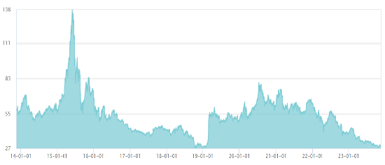 创业板指成分股中,电力设备、医药生物两个行业权重占比较高,合计超过54%。这两个行业年内回调显著,其中电力设备跌幅25.22%,医药生物跌幅12.57%,牵动创业板指也出现大幅下跌。(数据来源:WIND,截至2023年10月23日)