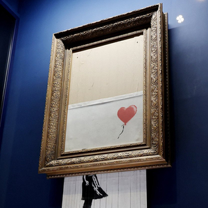 班克西(Banksy)是目前全球最著名的街头艺术家之一,他的涂鸦作品出现在世界各地的街头。其作品《手持红气球的女孩》(Girl With Red Balloon)曾于2018年在苏富比拍卖行以百万英镑的价格成交,但随即被班克西自己毁坏,并引起极大争议。