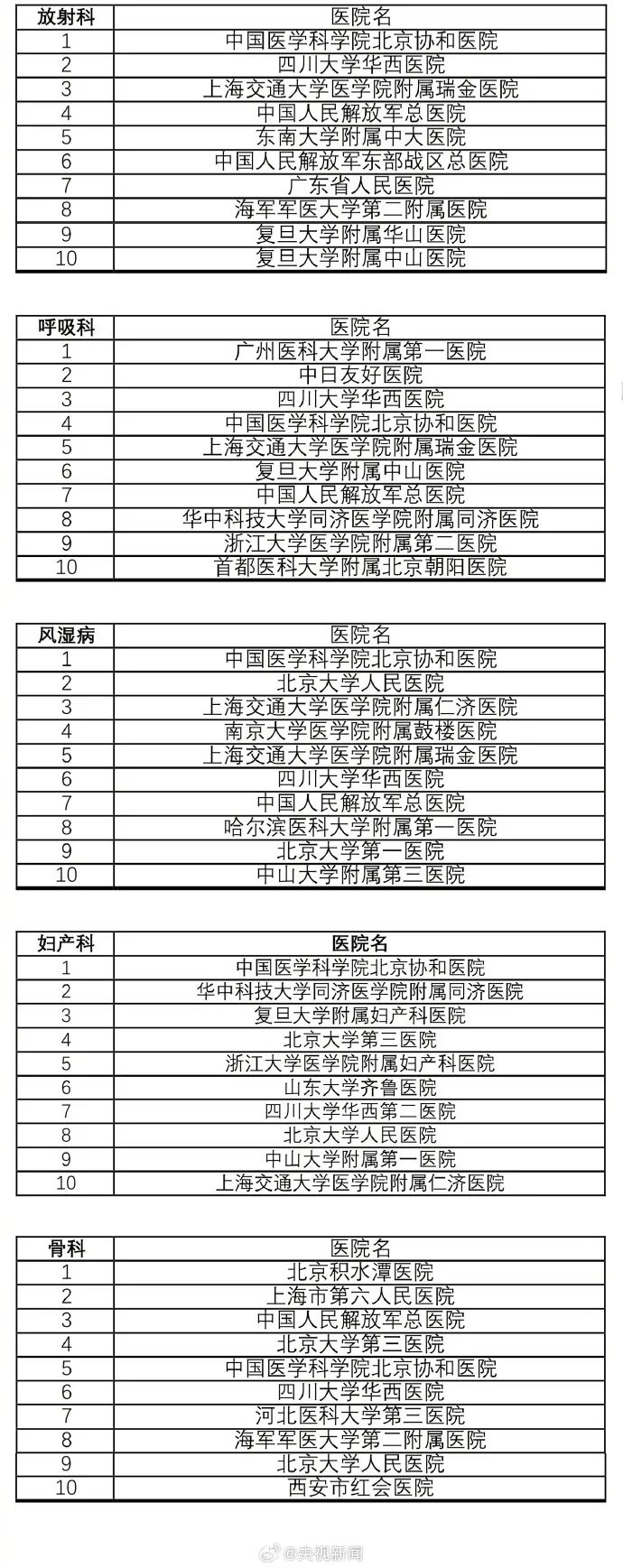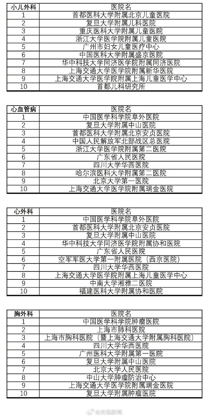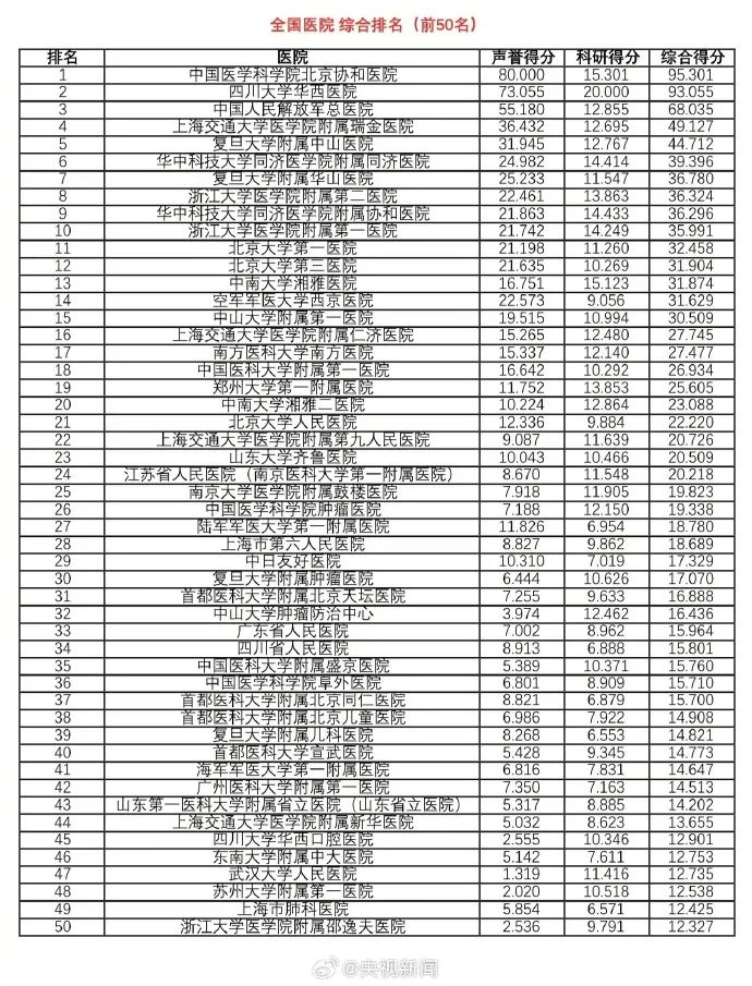 收藏!最新版中国医院排行榜发布