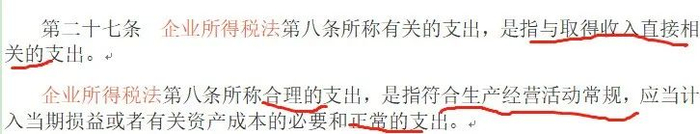 企业所得税法和实施条例对扣除的规定都是和收入相关,合理,所谓合理就是必要的,正常的支出。