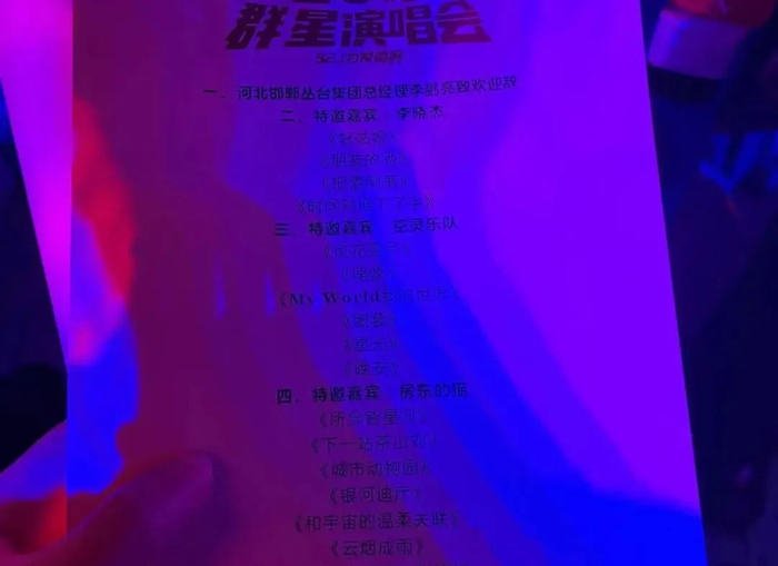 这场音乐节过后,6月,邯郸又办了一场演唱会。我更惊讶了,「邯郸怎么了?这是升咖了啊?」演唱会的冠名商是邯郸一家很有名的酒企。这个演唱会也赠了不少票,学校老师会发,周边居民会发,买酒会送,开发商也会送,感觉恨不得半个邯郸城的人都去了。
