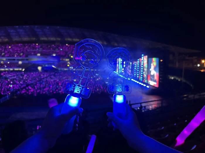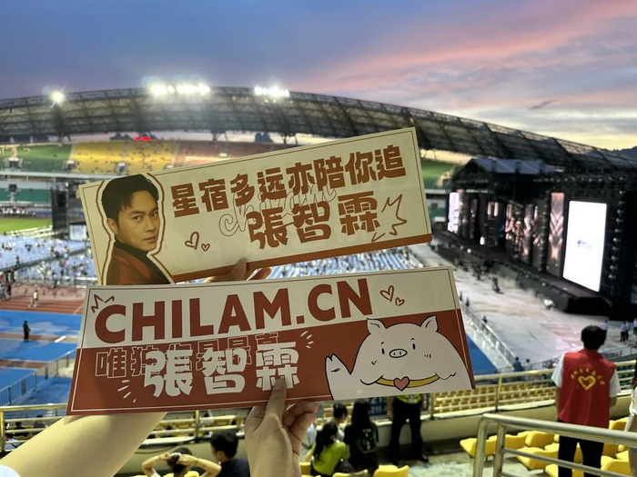 钱也花了,我和妹妹就当做来唱K了,反正歌传唱度很高,没有提词器我们也会唱。我和妹妹专门带了张智霖的应援牌过去,结果周围都是叔叔阿姨。我旁边那个五十多岁的阿姨是在公交车上看到的宣传广告买的折扣票入场。当我们拿着应援牌开口大声跟唱的时候,旁边的叔叔阿姨都在静静地看着。