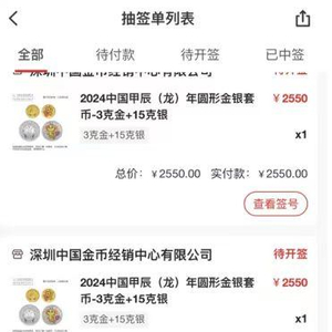 11月24日,邱女士告诉澎湃新闻,自己预约的4套龙年纪念币均已中签,在未发货前向平台申请退款,也被拒绝。