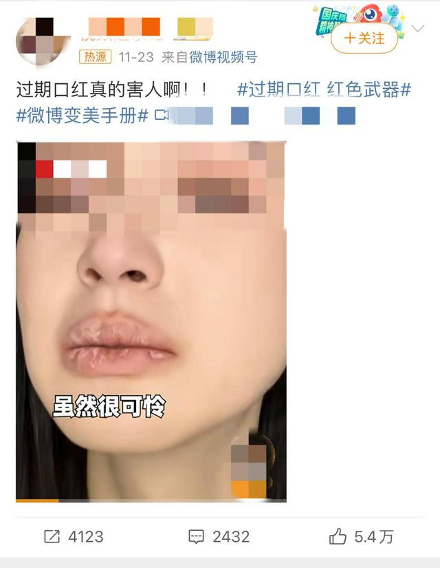 近日,一位博主在视频中自称用了妹妹送的网红口红后,“嘴张不开了,水喝不了,一天掉3层皮”,去医院确诊了真菌性唇炎。这则标题为“过期口红害人”的视频迅速引发热议,与之相关的话题还上了热搜。在评论中,记者发现不少网友认为不是口红过期问题,而是本身产品质量出了问题,“我一支口红能用很多年,从来没过敏过。”