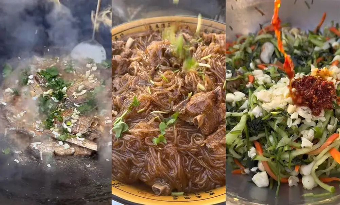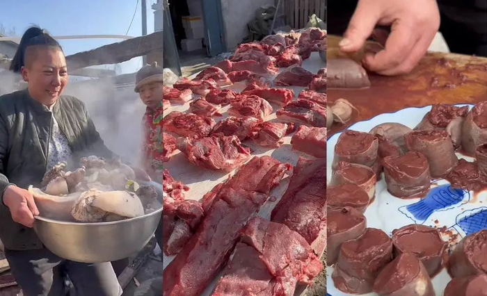 对于只在菜市场见过猪肉的城市人,杀猪菜的小视频比B级片还刺激。绑猪腿、烫猪毛、杀猪、解剖、把每个器官切割好,再支几口大锅,把猪的不同部位煮熟,切块下锅爆炒——这幅热闹的景象,愈加衬托自己手里凉透的预制菜是多么糟蹋粮食。