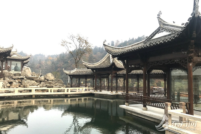 离开了九华山下礼村文化体验区,大巴车停在了一个巨大的石牌坊外,这里是徽苑文化展示和康养中心。踏着台阶上去,这里到处散发着古色古香的气息:饱受风吹雨打的石头雕刻、弥漫着松香的亭台轩榭,以及展列在堂屋内厅的木雕、老楹联……