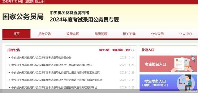 11月26日,中央机关及其直属机构2024年度考试录用公务员公共科目笔试正式开始。
