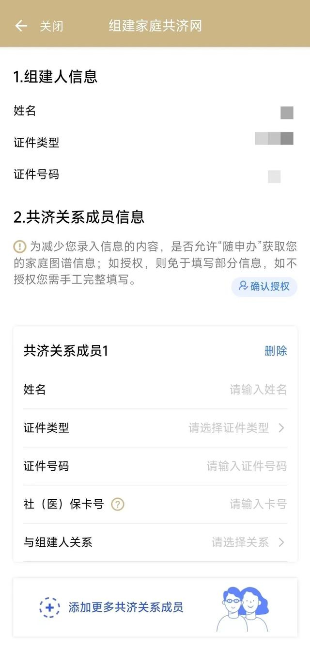 第二步:根据申请流程完成组建家庭共济网,选择家庭共济资金使用方式。
