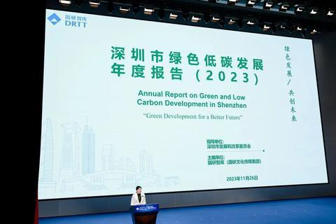 论坛开幕式上,国研智库正式对外发布《深圳市绿色低碳发展年度报告(2023)》。该报告围绕深圳市绿色低碳发展的顶层设计、技术创新、产业升级、能源管理、交通体系、智能建筑、生态环境、开放合作八大方面,梳理与总结了2023年深圳绿色低碳发展的工作与成果。