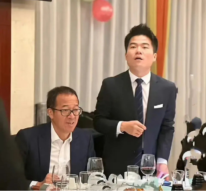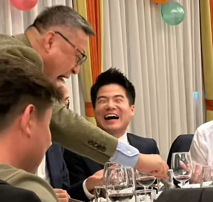 新东方CEO周成刚隔着一人给他倒酒。
