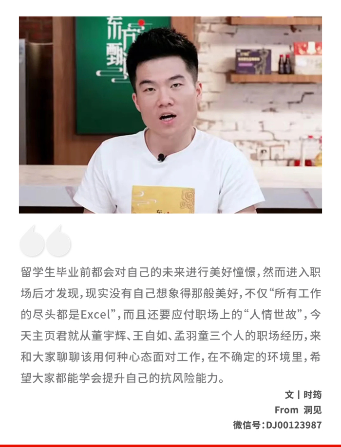 他也经常在直播时和俞敏洪等高管打趣开玩笑,但往往张弛有度、不卑不亢。