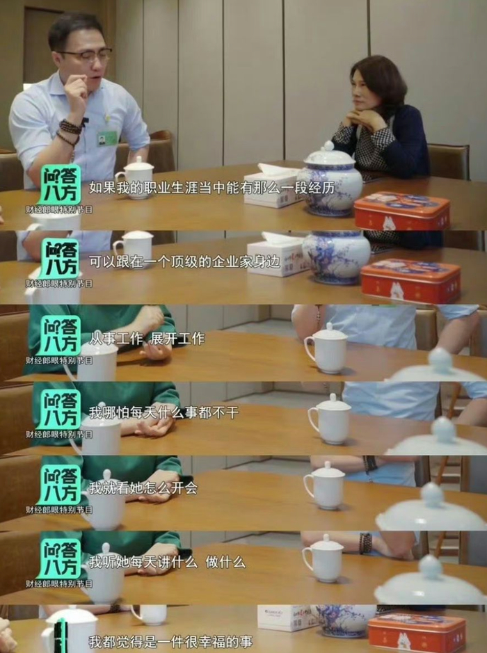 “如果职业生涯可以跟在一个顶级的企业家身边,哪怕每天什么事都不干,就看她怎么开会,听她每天讲什么、做什么,我都觉得是一件很幸福的事。”