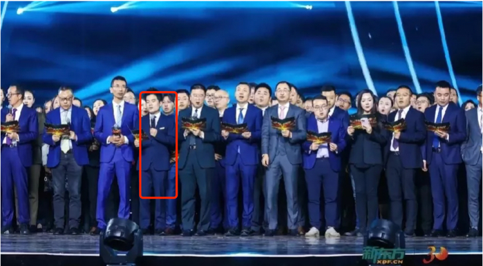 虽然他说自己不是新东方的高管,但在结尾大合唱时,被拉到了高管第一排。
