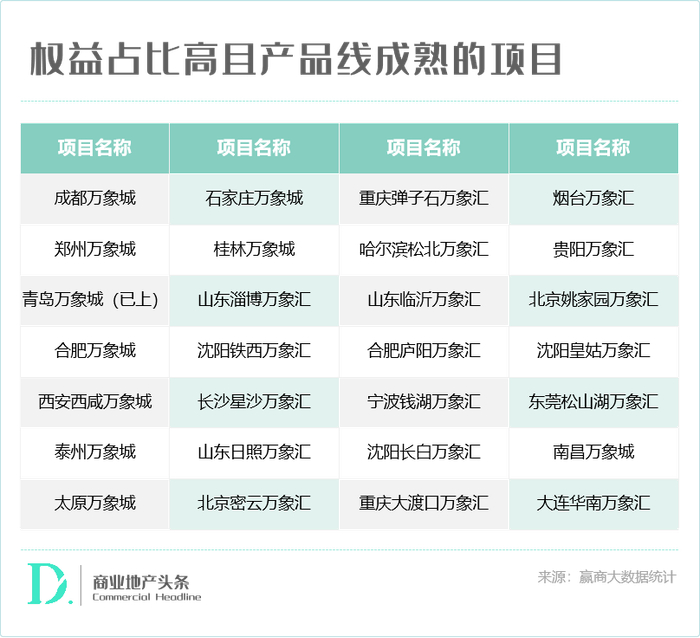 目前,华润的资产池相当充足。考虑到实践中,境内还没有权益占比较低而进行REITs的案例,剔除权益占比在60%及其以下的项目,以及重奢项目、万象天地产品线、早期的五彩城产品线及零散非产品线项目,以下27个项目,皆有可能成为华润REIT接下来的扩容对象。