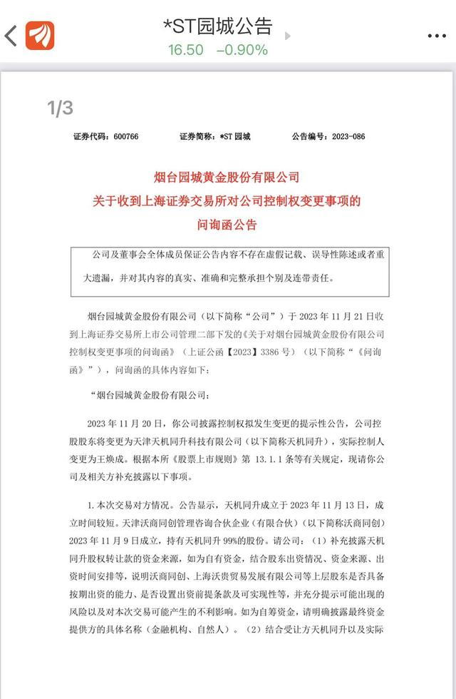 对此,上交所火速向*ST园城下发了问询函,要求其就交易对方情况、天机同升实控人认定、公司控制权稳定性以及股价异动等问题进行补充披露。