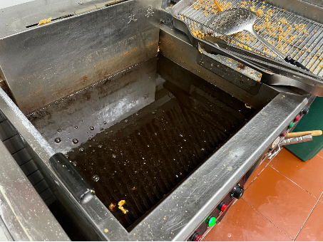 油锅炸制就是后厨的重要加工程序之一。新浪科技发现,华莱士的炸油颜色已如同酱油。店员表示,该油系昨晚刚刚换新,但到了第二天,也就是油已使用第三天时,油锅颜色更深了。