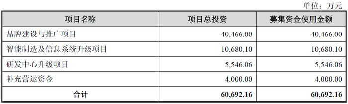 环亚科技原拟在深交所创业板公开发行不超过6,000万股,占本次发行后公司总股本的比例不低于10%,公司拟募集资金60,692.16万元,用于品牌建设与推广项目、智能制造及信息系统升级项目、研发中心升级项目、补充营运资金。