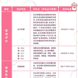 本次比较试验依据相关标准要求,对50款儿童水壶的密封性能、容量偏差、吸管咬扯耐久性、保温效能、耐冲击性等方面进行比较试验。