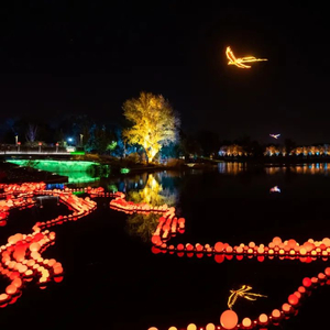 这里也可以观赏贝壳剧场的吉凤朝阳光影秀表演以及吉凤飞舞限时表演。吉凤飞舞限时表演最佳观赏地点位于蓝色港湾商区“蓝港观鱼”及朝阳公园“天鹅之家”沿岸,表演时长5分钟。火红的“凤凰”扶摇直上,或翱翔星空、或滑翔水面,俯揽壮美亮马河,与波光相映生辉。在此还可欣赏到时光印象、鹅湖之会等光影场景。