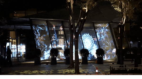 沿蓝色港湾北侧的亮马河畔,向西900米,步行约15分钟,即本次灯光节的主秀场之一——亮马港湾“三生宇万物”光影秀。亮马港湾拥有巴洛克式的唯美建筑风格,灯光秀结合建筑特色,极致展现光影的唯美和艺术感,这不仅是一场灯光秀,更是一幅生动的画卷,呈现出大自然万物生长的景象。