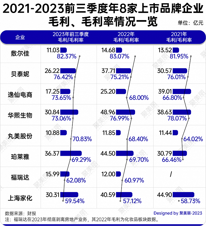 1)敷尔佳毛利率位居三年榜首,逸仙电商毛利率“大迈步”