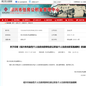 中国质量新闻网讯(段瑞如) 为进一步发挥住房公积金制度保障作用,减轻缴存职工的还贷压力,11月24日,绍兴市住房公积金管理中心发布《绍兴市商业性个人住房贷款转住房公积金个人住房贷款实施细则》。