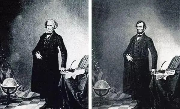 你见过右边这张照片吗?这是著名的美国前总统亚伯拉罕·林肯(Abraham Lincoln)在当时参加竞选时的肖像照,林肯倚在一张桌子前,神态轻松,举止绅士,形象完美无比。不过,这其实是一张假照片——有人“P”去了政治家约翰·卡德维尔·卡尔霍恩(John Caldwell Calhoun)的头部,把林肯的头像拼接上去。