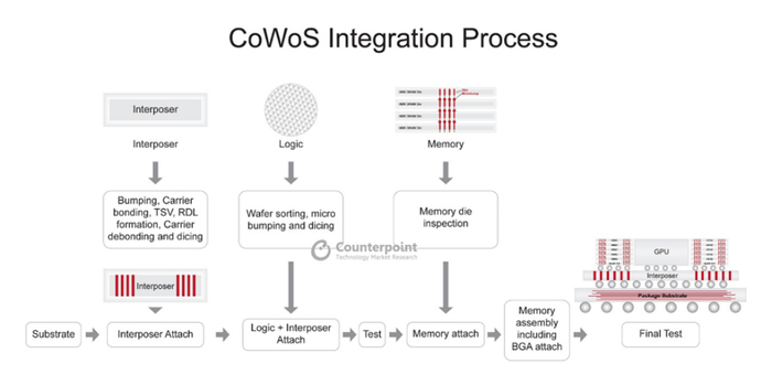 传统封装技术已经难以满足HBM的需求,而台积电的CoWoS(chip-on-wafer-on-substrate)封装则是较为理想的方案。
