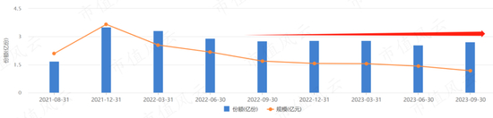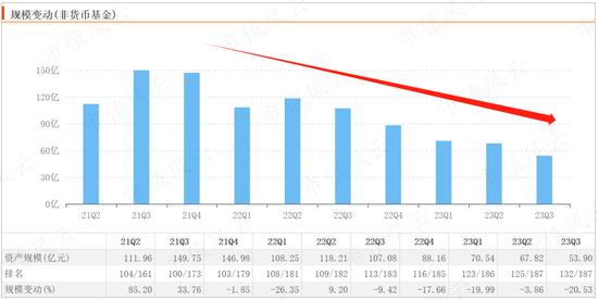 恒越基金是位于上海的一家个人系公募,成立于2017年,2021年三季度末,资产规模还有150亿,这两年时间缩水到57亿,市场排名也逐渐靠后。