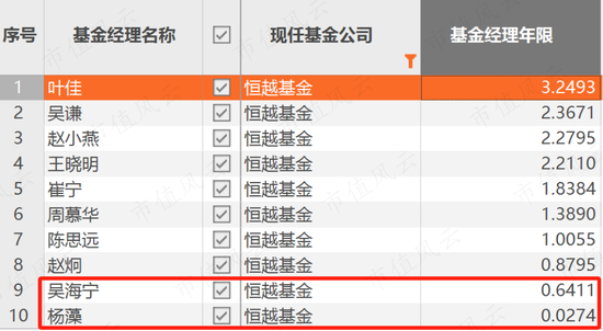 近日,叶佳因内部任职调整宣布离任,恒越品质继而由吴海宁、杨藻共同管理,而这两位都是新人基金经理,加起来基金管理年限不足1年。