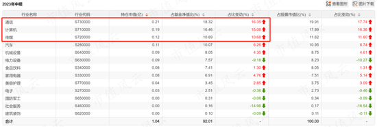 比如说今年上半年,TMT板块火热,恒越品质大笔加仓通信、计算机、传媒等行业,三大板块占基金净值比达到45%。