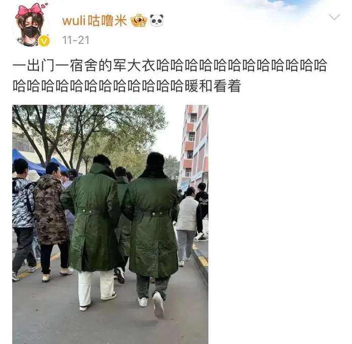 这是他们入冬的第一件时尚单品。“当其他同学还在电商平台上凑优惠券精打细算,又苦于买回来的便宜羽绒服粗制滥造时,一连串披着军大衣鱼贯而入的男同学,当即就收获了全班最羡慕的眼光。他们,是真暖和啊。”