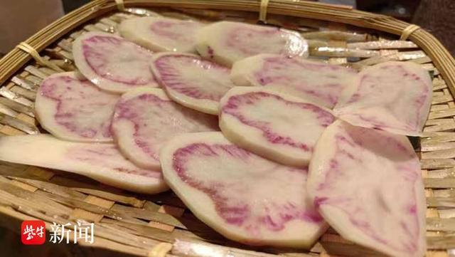 有的土豆表皮鲜艳,也有的土豆很“花心”。马女士在吃火锅的时候发现菜单上有一款“七彩土豆”,出于好奇点了一盘。上桌的实物并没有七彩,但是带着一圈紫红色的花纹,还是很漂亮的。由于涮火锅汤底味道比较重,马女士并没有尝出七彩土豆有何特别的味道,不过口感粉粉的还不错。