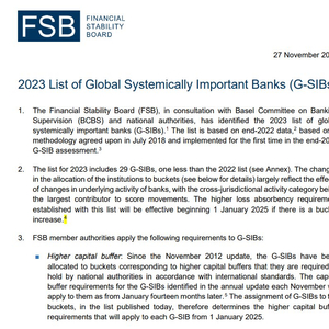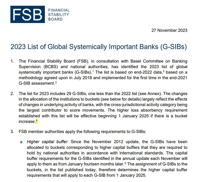 北京时间周一傍晚,金融稳定委员会(Financial Stability Board)官方公布了2023年全球系统重要性银行名单,也就是俗称的G-SIBs。