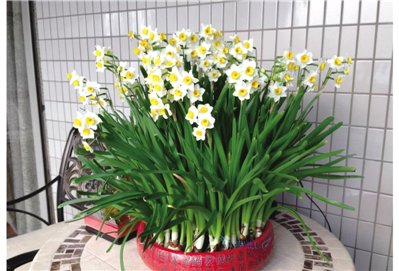 水仙花在冬天里开花,是非常耐冻的花卉代表之一。在春节联欢晚会观众席上摆着的花,永远都是盛开的水仙花,它的花朵不仅漂亮,而且清香味扑鼻,花期有半个多月,而且种植非常简单,只需把它丢在水里面就可以了,温度只要不低于0℃,就可以正常生长开花,只要有水有太阳,随随便便都能养开花呢。