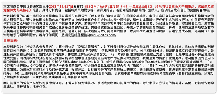 ESG|金属企业ESG:环境与社会责任为中期重点,碳议题及资源保障为热点核心