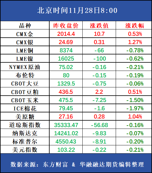 【宏观】:国内:10月经济数据出炉,总体是底部企稳的态势,地产数据方面基本还是弱稳的情况,同比增速继续维持负增长,但也没有进一步扩大负增长的幅度。政策方面,仍然是宽财政方向,本周地产又陆续传出“地产白名单”政策,深圳二手房首付比例降至4成。海外:美国10月成屋销售总数不及预期,但全国所有地区的房价均上涨,利率回落下预计后续房价仍有支撑,但供给或仍延续不足态势;美国11月密歇根大学1年通胀预期终值4.5%,密歇根大学消费者信心指数终值61.3,均超预期和前值,预计美国终端需求偏弱的态势逐渐显现;美国10月耐用品订单环比大跌5.4%,首次申请失业救济人数超预期回落,耐用品订单受运输设备领域拖累,劳动力市场仍在降温中。如果11月失业率再次反弹的话,市场有可能开始交易衰退。