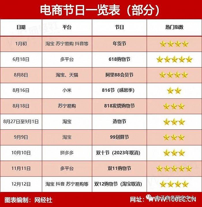 有意思的是,几乎全世界的每一个节日,都成了电商狂欢日。从一月的元旦,二月的春节、情人节,三月的妇女节,到五六月的端午节、母亲节、父亲节,再到七八九月的七夕节、中秋节,十月的国庆节、万圣节,十一月的感恩节,十二月的圣诞节等等,各平台都会推出不同类型的促销活动。为了营销和宣传,不少平台又在“造”新的节日。除双11、618外,还有双12、年货节、99划算节等等。