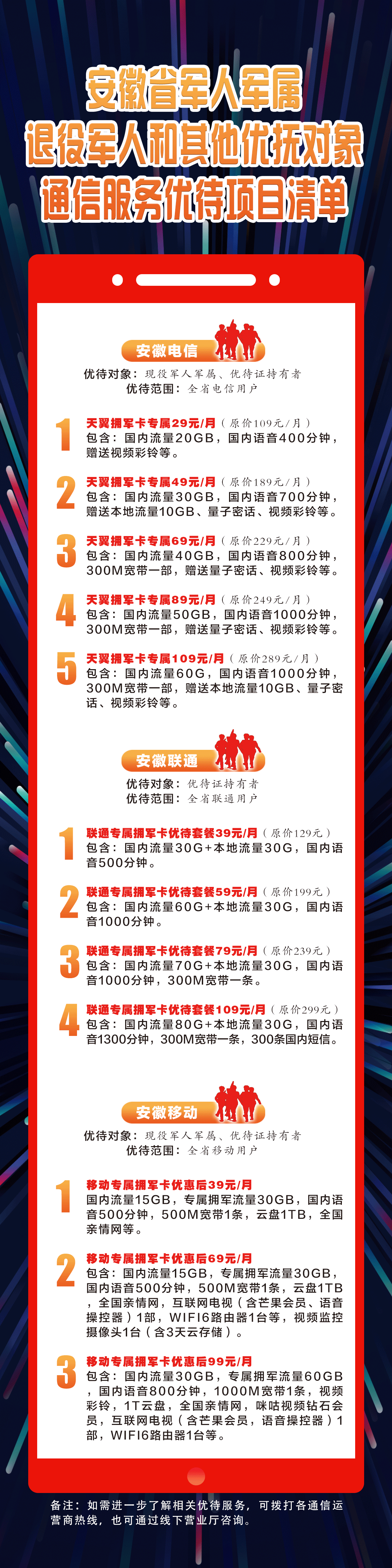 安徽推出拥军电话卡!最低不到三折,全国退役军人等群体来皖可办